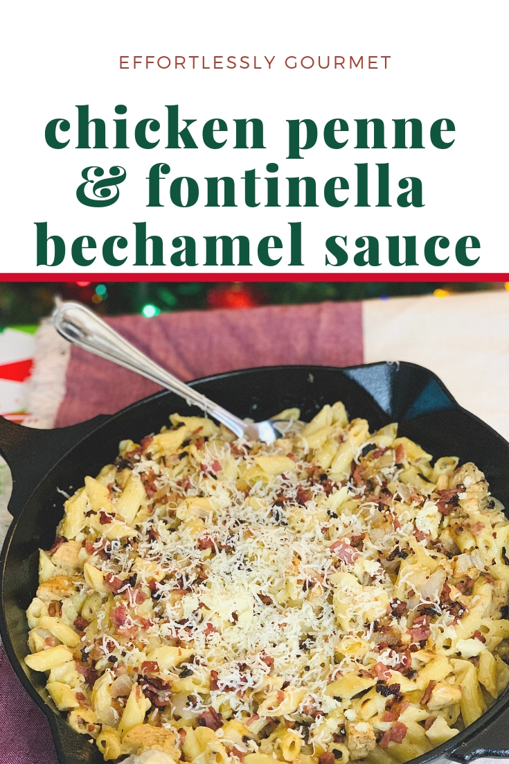 Of course, my favorite part of playing hostess is putting a gourmet spin on old classics or coming up with completely unique recipes of my own like my Gourmet Chicken Penne with Fontinella Béchamel Sauce. This dish is so delicious and is guaranteed to be a hit at your holiday gatherings. Keep reading to get the recipe!